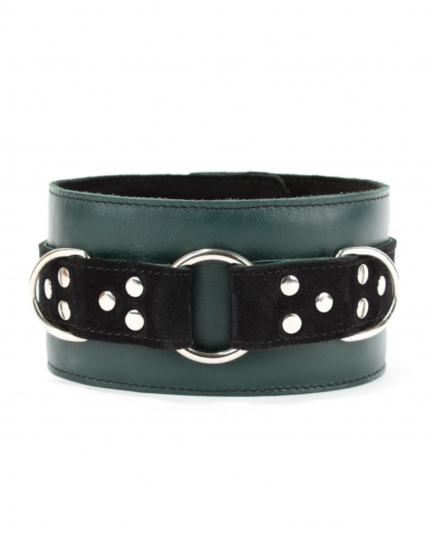 Стильный, соблазнительный ошейник из натуральной кожи в потрясающем цвете изумруд - это, отличный аксессуар для самых невероятных сессий, который создаст определенный акцент на шее!