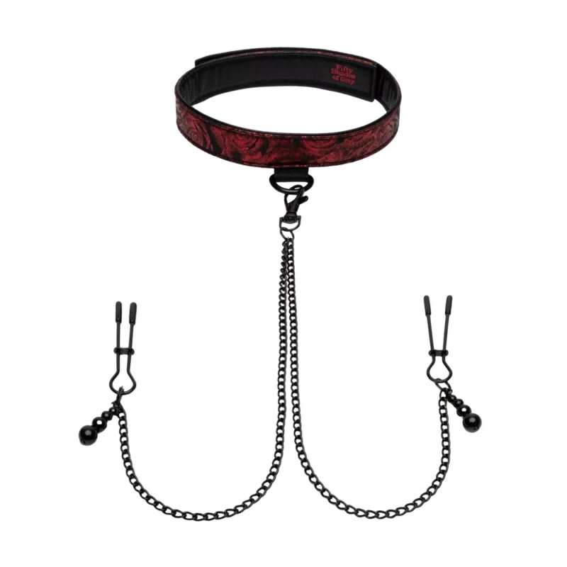 Ошейник двусторонний + зажимы на соски "Fifty Shades of Grey" экокожа