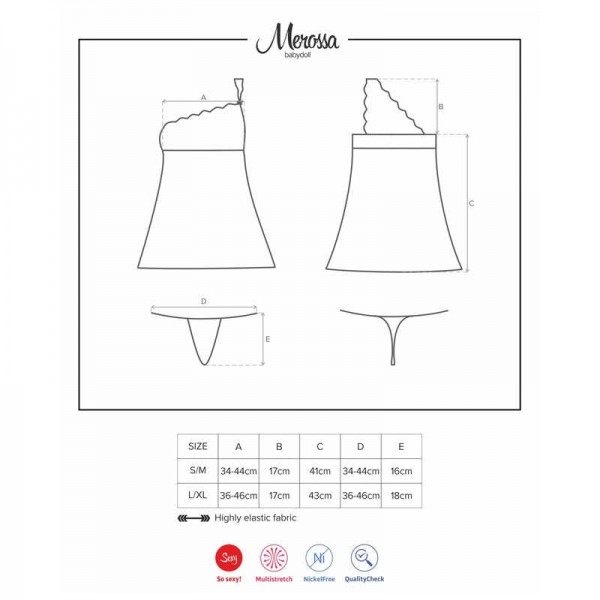 Пеньюар на одно плечо "Obsessive Merossa" черный, S/M